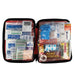 • Includes: (2) Procedural face masks, (1) Germicidal wipe, (1) Rain Poncho, (1) Emergency blanket, (2) Hand warmers, (1) Emergency drinking water pouch, (1) Light stick, (1) Whistle, (1) "Call 9-1-1" banner, (6) BZK antiseptic towelettes, (6) Alcohol cleansing pads, (3) Triple antibiotic ointment packs, (2) Hand sanitizer packs, (1) Sterile eye pad, (6) 2" x 2" Gauze dressing pads, (2) 4" x 4" Gauze dressing pads, (1) 5" x 9" Trauma pad, (1) 2" Conforming gauze roll, (20) 3/4" x 3" Adhesive plastic bandage, (10) 3/4" x 3" Adhesive fabric bandage, (10) 3/8" x 1-1/2" Junior adhesive bandage, (2) 1-1/2" x 1-1/2" Patch bandages, (2) Fingertip fabric bandages, (2) Knuckle fabric bandages, (3) Butterfly wound closures, (10) Cotton-tipped applicators, (2) Exam quality vinyl gloves, (1) First aid tape roll, (2) 2" x 2" Moleskin square, (1) Finger splint, (1) American Red Cross first aid guide, (1) Emergency Preparedness reference card