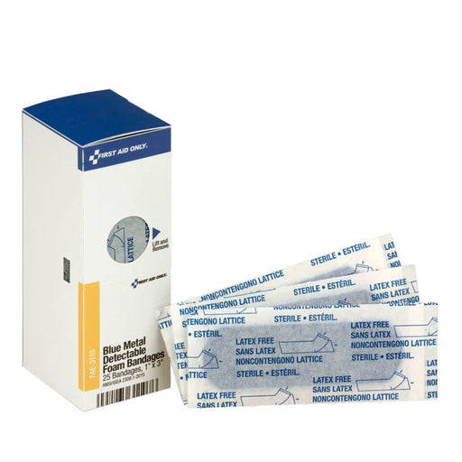 First Aid OnlyNot made with natural rubber latex Bandages internal foil allows for quick metal detection Blue color of bandage useful in food or pharmaceutical ...