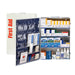 - Includes: Adhesive Fabric Bandages, 1" x 3" (100), Adhesive Fabric Bandages, 2" x 4" (25), Alcohol Wipes (100), Adhesive Plastic Bandages, 1" x 3" (100), Alcohol Wipes (100), Ammonia Inhalants (1), Antacid Tablets (100), Antiseptic Spray, 4oz (1), Burn Dressing, 4" x 4" (2), Burn Spray, 4oz (1), BZK Antiseptic Towelettes (50), Cold Pack, 6" x 9" (2), Conforming Gauze Roll, 2" (10), CPR Face Shield (1), Elastic Bandage Wrap, 4" x 5yd (1), Eyewash, 4oz (1), 1 Eyewash, 1oz with 2 Eye Pads and Strips (1), Fingertip Fabric Bandages (40), First Aid Guide (1), First Aid/Burn Cream Packets, 0.9g (25), Hand Sanitizer, 4oz (1), Hema-Flex 5" x 9" Trauma Pad in 4" x 4yd Gauze with 2 Nitrile Exam Gloves (1), Ibuprofen Tablets (250), Knuckle Fabric Bandages (40), Nitrile Exam Gloves (10), Non Stick Pads, 3" x 4" (50), Padded Flexible Splint, 4.25" x 24" (1), Povidone-Iodine Infection Control Wipes (50), Rubber Tourniquet, 1" x 18" (1), Scissors (1), Sterile Gauze Pads, 4" x 4" (1), Sterile Gauze Pads, 2" x 2" and 3" x 3" (48), Trauma Pads, 5" x 9" (3), Triangular Bandage, 40" x 40" x 56" (2), Triple Antibiotic Ointment Packets, 0.5g (25), Triple Cut Adhesive Tape Roll, 2" (1), Tweezers (1)